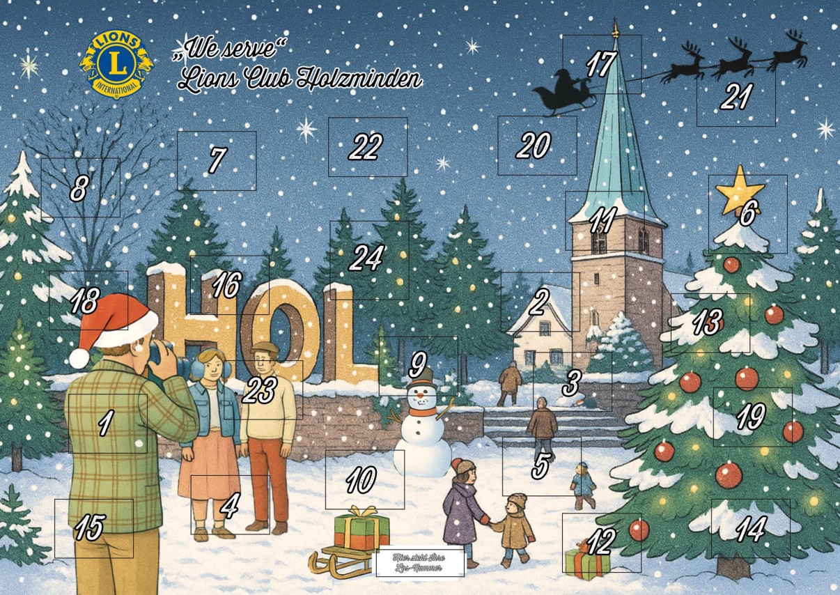 Hinter den 24 Türen unseres Adventskalenders stecken hochwertige Gewinne im Wert von je 10 bis 1.500 Euro. Jeder Kalender ist nummeriert und hat eine Gewinnchance. Welche Nummer gezogen wurde, lesen Sie ab dem 1. Dezember täglich www.tah.de, www.meine-onlinezeitung.de, www.adventskalender.lions-holzminden.de oder im Schaukasten vor der Stadtbücherei Holzminden, Obere Straße 30.
